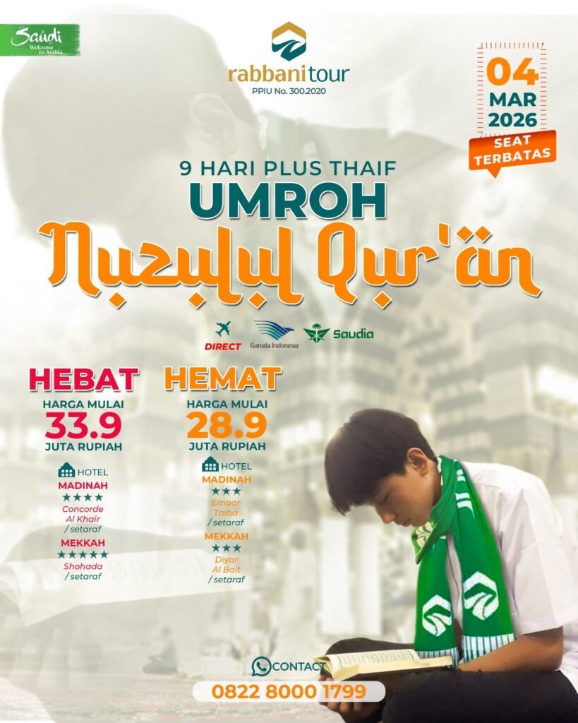Jadwal Umroh Rabbanitour, Segera Rencanakan Perjalanan Umroh Anda dan Keluarga.