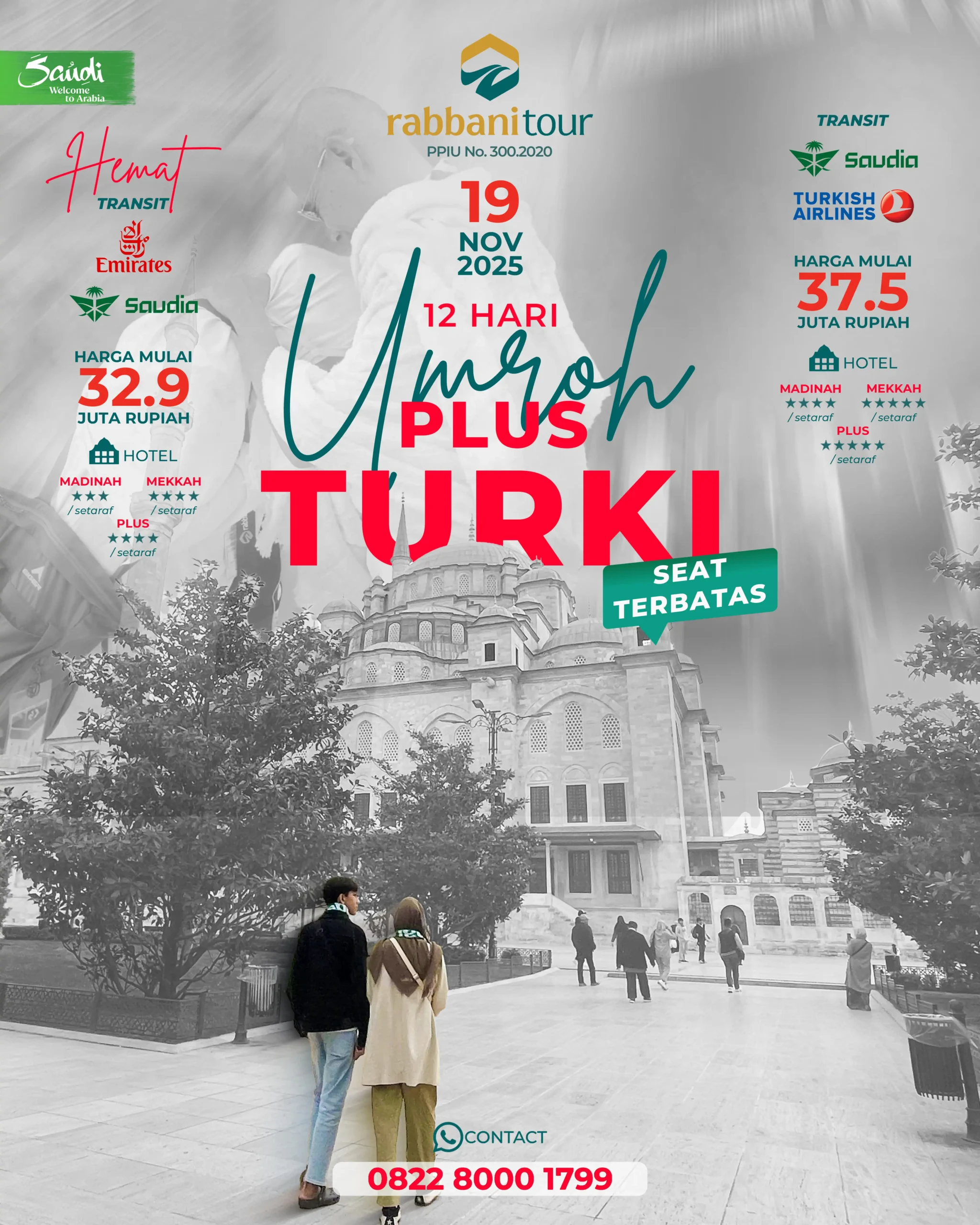 Umroh plus Turki dengan Rabbanitour menggabungkan spiritualitas dan keajaiban wisata Turki, memperkaya perjalanan dengan keindahan alam, sejarah, dan budaya. Bergabung memberikan momen berharga, kehangatan dalam ibadah, dan kesempatan untuk mendalami sejarah Islam. Pastikan Anda daftar segera untuk pengalaman tak terlupakan.