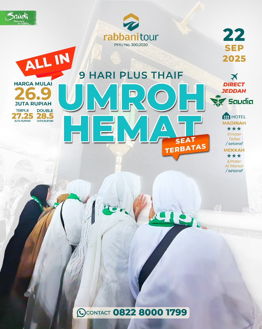 22 September 2025 – Umroh Hemat Direct 9 Hari (ALL IN)