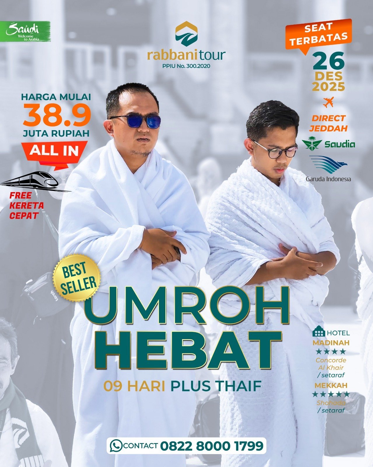 Paket Umroh Hebat menawarkan pengalaman ibadah yang istimewa dengan fasilitas mewah, pendampingan spiritual, dan pelayanan 24/7. Dengan Hotel bintang lima, pendampingan oleh ustadz ahli, dan layanan tim yang siap membantu, Anda akan merasakan kenyamanan dan keberkahan selama perjalanan. Ini adalah pilihan terbaik untuk pengalaman umroh yang tak terlupakan dan mendalam di Tanah Suci.