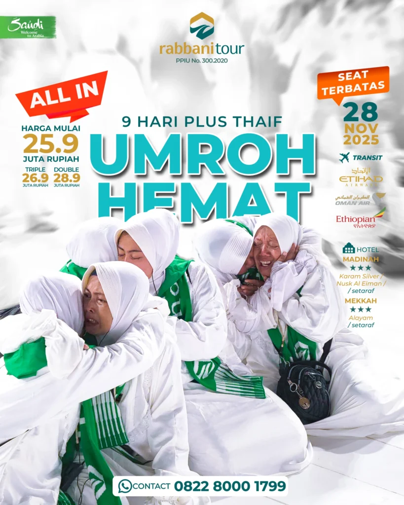 28 November 2025 – Umroh Hemat Transitt 9 Hari (ALL IN)